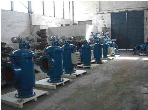 自清洗过滤器水自进水管进入过滤器的,首先由粗 滤芯组件滤出大颗粒的杂质,然后到达细滤网,再由细滤网滤出小颗粒的杂质,然后由出水口出水。